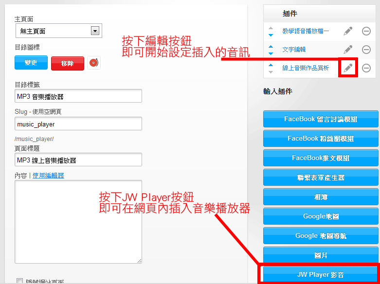 ◆ MP3 音樂播放器後台編輯介面: